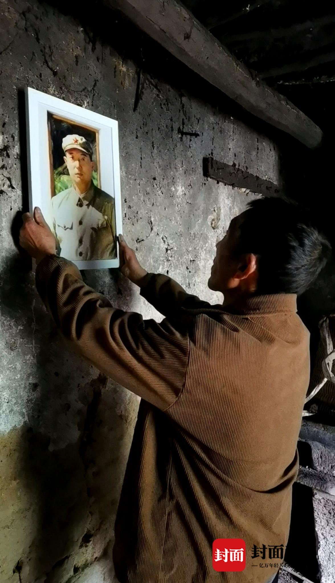 钟其林在老屋里悬挂钟登华的“照片”。曾业 摄